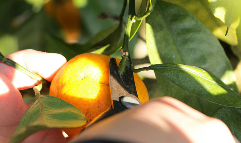 片手で枝を持つ→みかんを軽くクルッと回す→カット!
